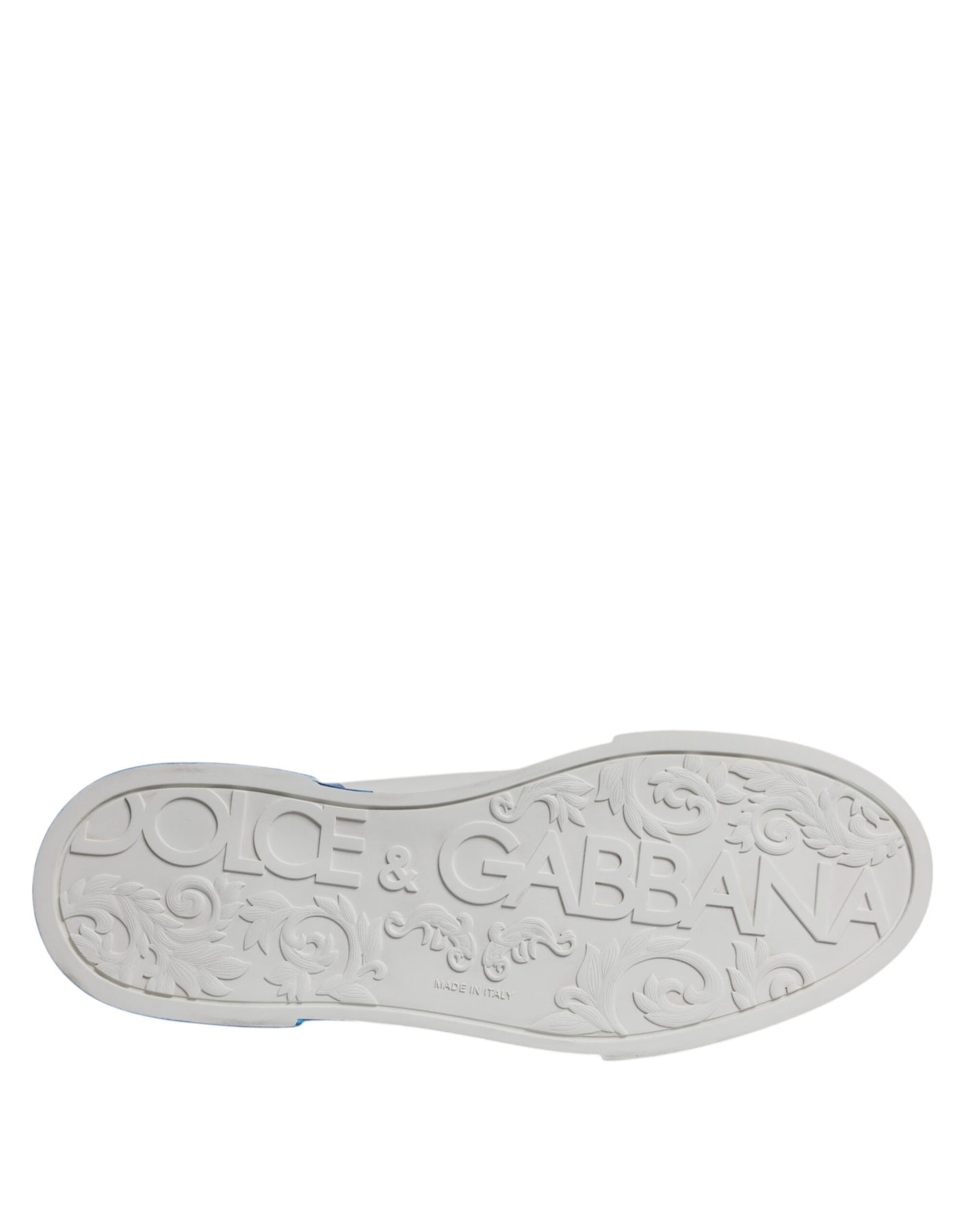 Gorgeous brand new with tags, 100% Authentic Dolce & Gabbana Portofino sneakers come with the brand name lettered on them. Made from leather in a blue and white shade, they feature lace-up vamps, round toes, and comfortable rubber soles.